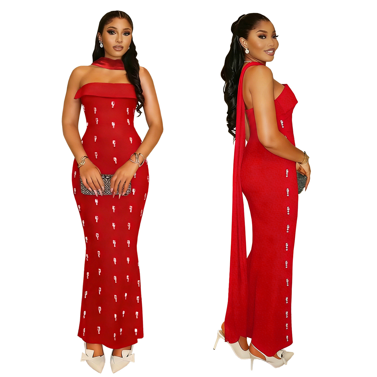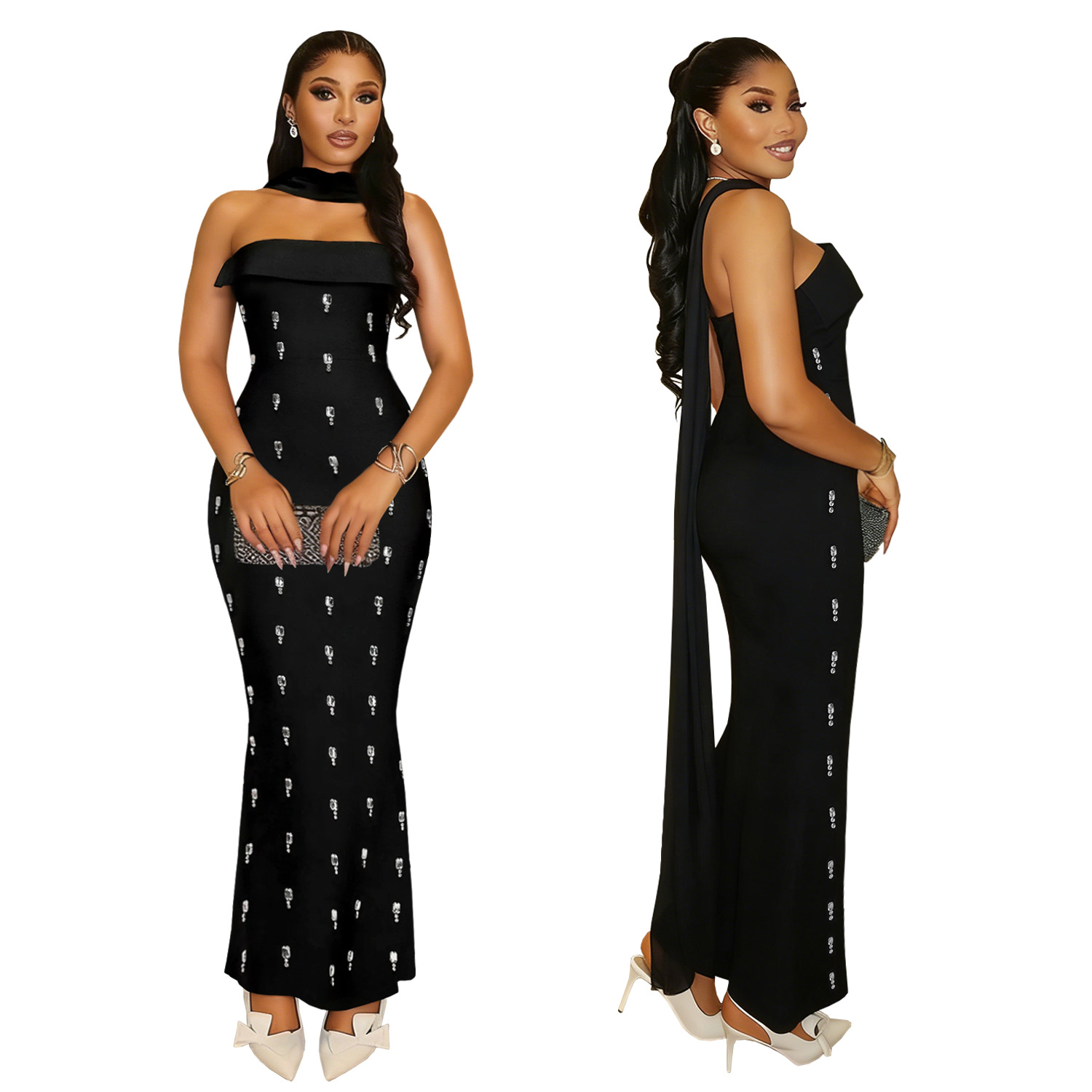 Elegant Strapless Embellished Ribbon Dress Set for Women Fashionable Two-Piece Outfit