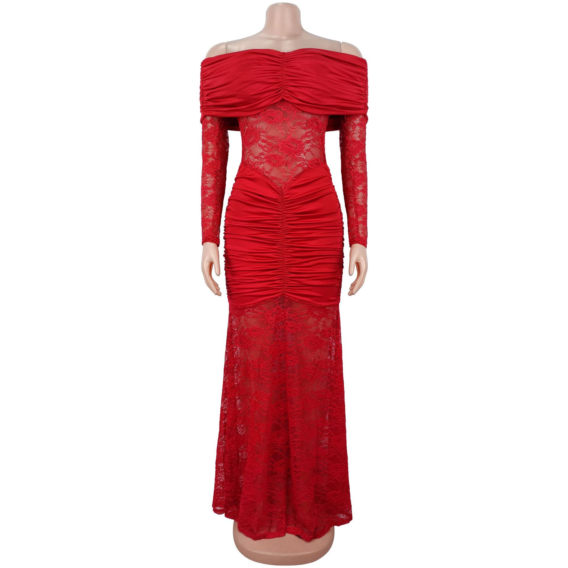Fashion Women's Sexy One-Shoulder Lace Bodycon Dress