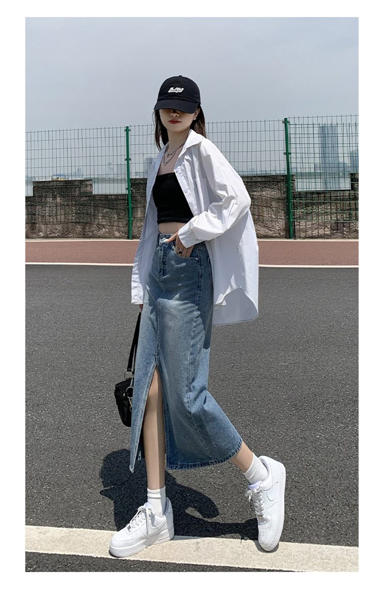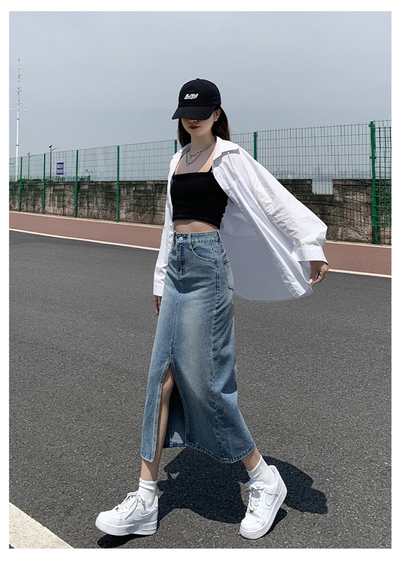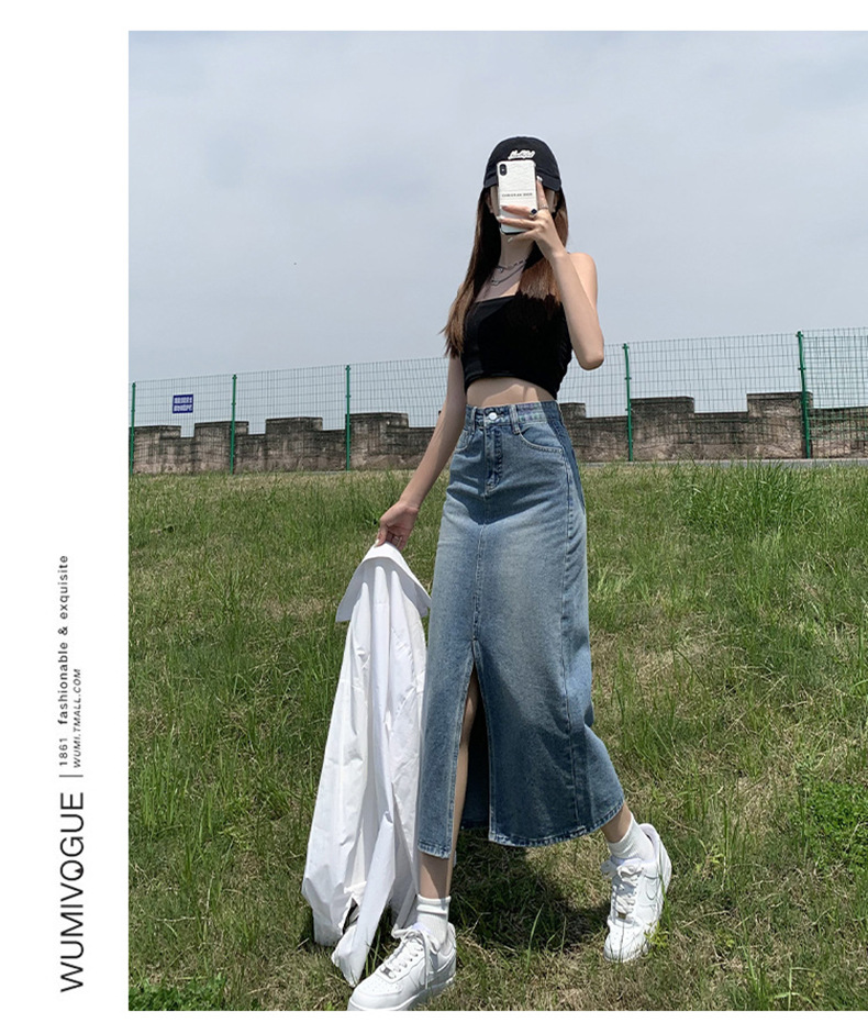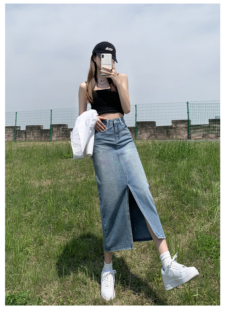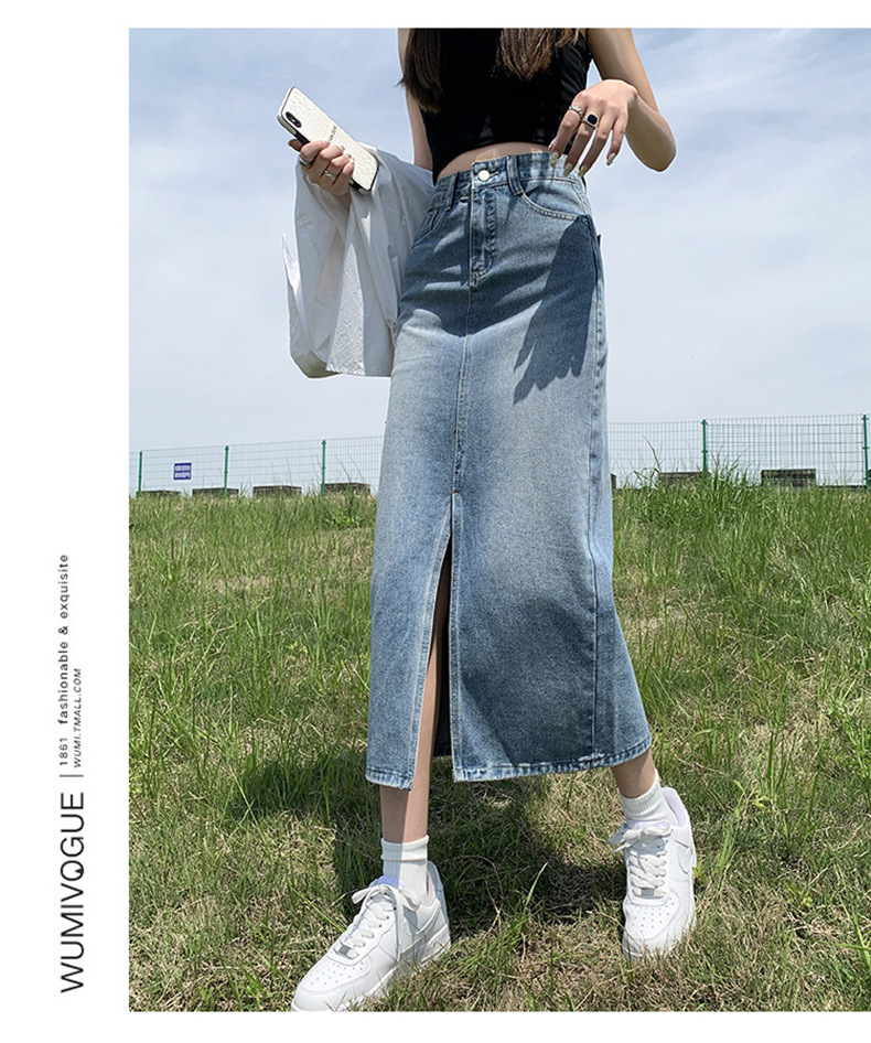 Light Blue Split Denim Skirt for Women High Waist Slim Fit A-Line Mini Skirt, Summer Fashion