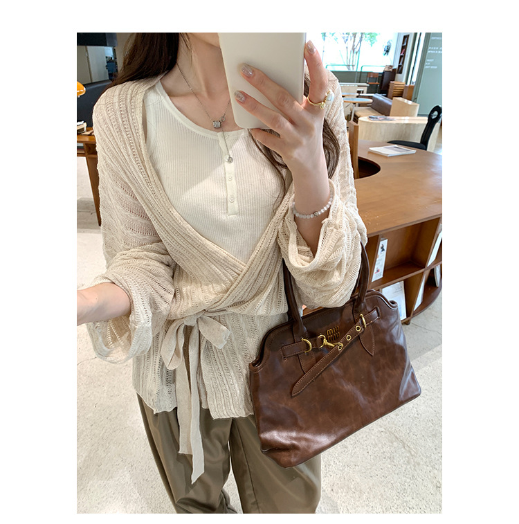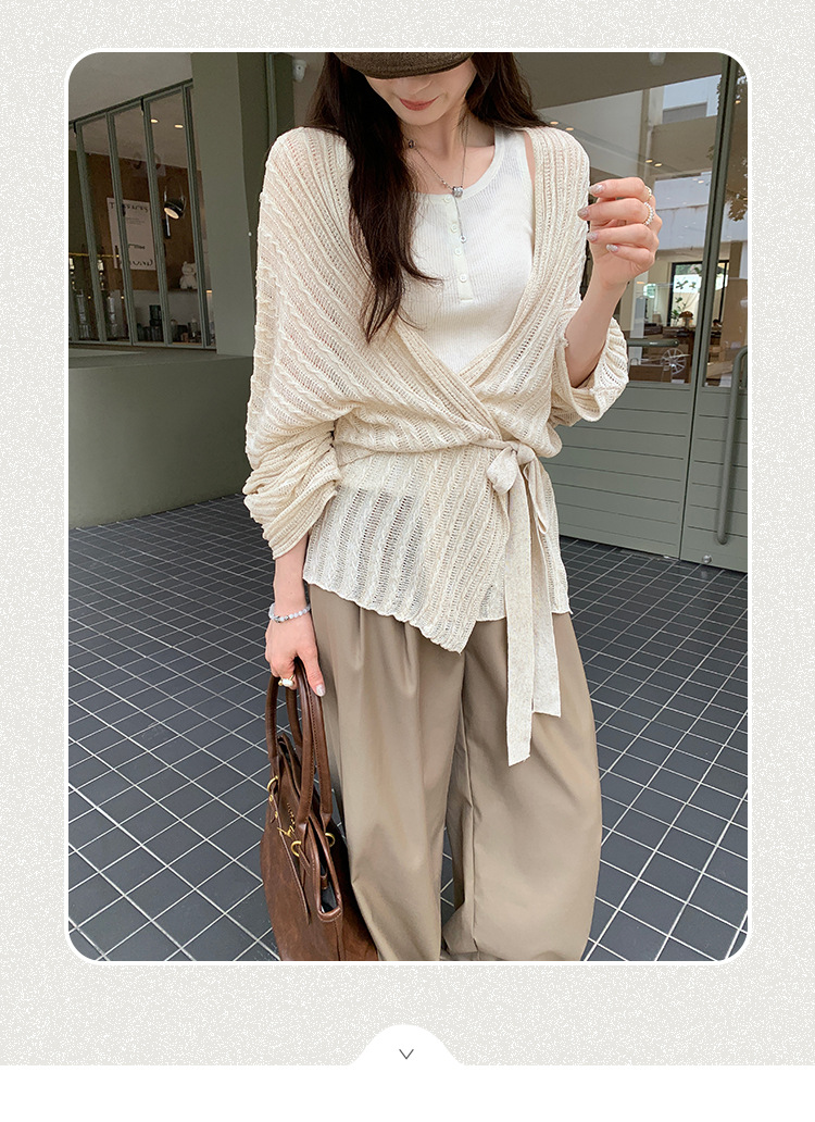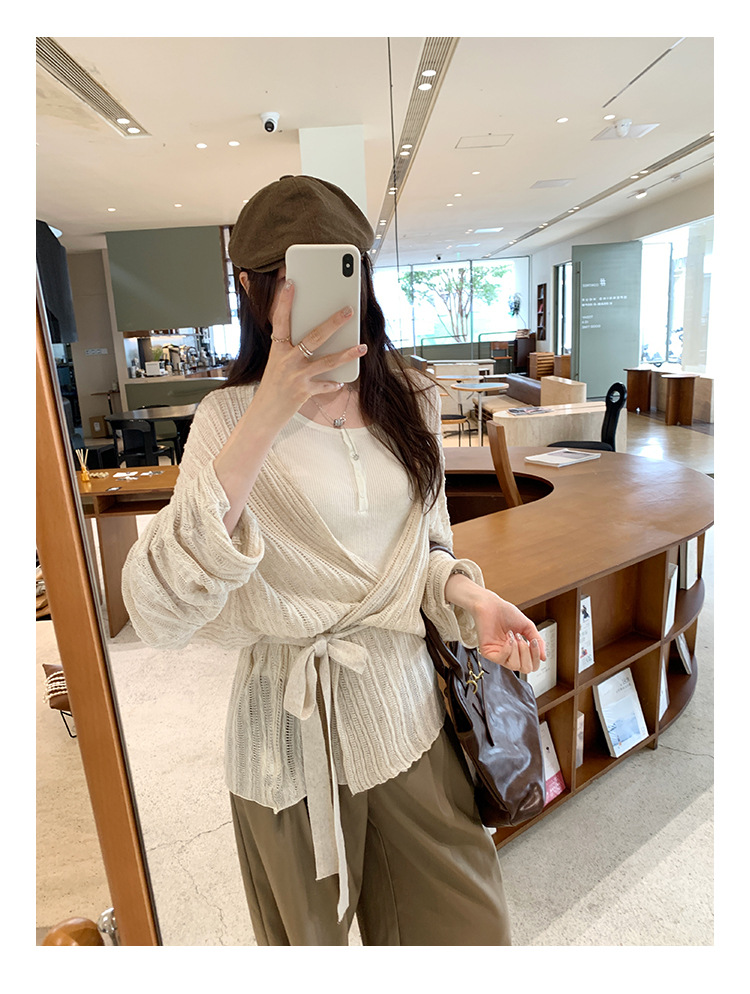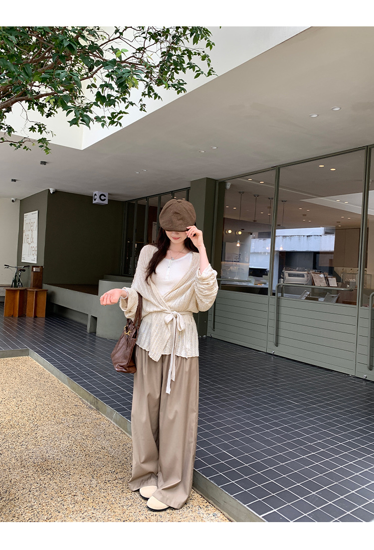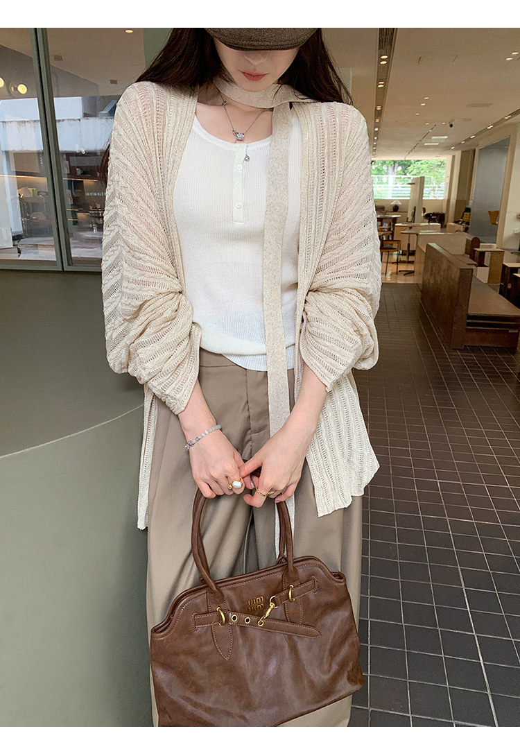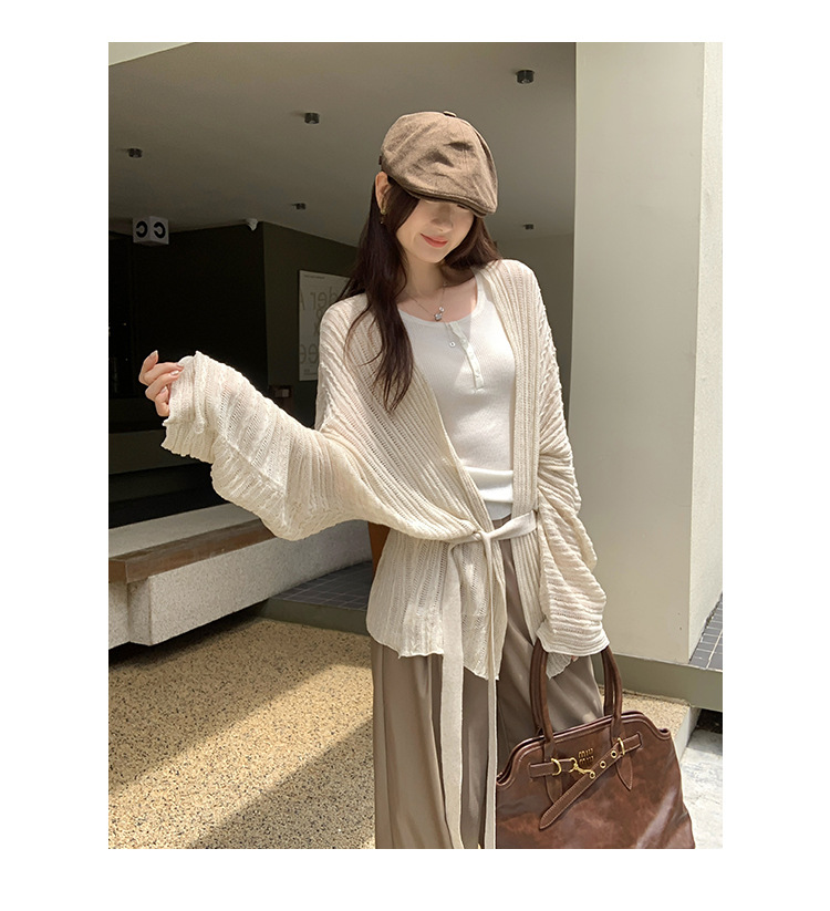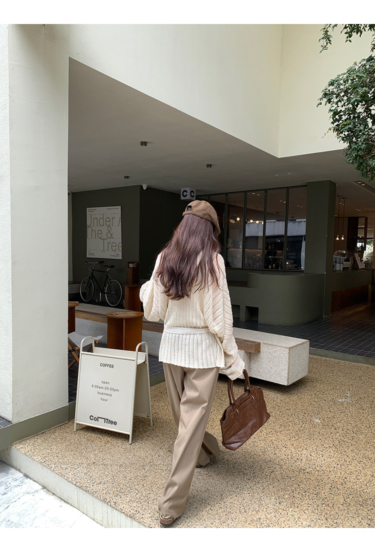 Loose Lazy Atmosphere Outfit Apricot Long Sleeve Knit Cardigan Coat for Women
